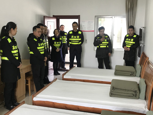 圖為考察小組在員工寢室參觀軍事化內務 考察小組負責人表示,通過本次現場觀摩與文明服務錄像交流受益匪淺,交流的不僅是業務,更多的是思路。 此次交流學習,兩個兄弟站所相互切磋、相互進步,取長補短,為共同創建具有特色的優質收費站夯實基礎。 陳瑩