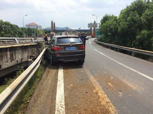 8月13日上午10:30分左右,臺(tái)州收費(fèi)所出口寧向匝道口有一輛黑色寶馬X3斜靠在護(hù)欄旁,其車頭左側(cè)因碰撞護(hù)欄而嚴(yán)重凹陷,左前輪胎報(bào)廢。 當(dāng)時(shí),該所出口五號(hào)車道的欄桿發(fā)生故障,需要暫時(shí)關(guān)閉進(jìn)行維修。班長張海勇在內(nèi)廣場引導(dǎo)車輛時(shí)發(fā)現(xiàn)此起事故,走近細(xì)看,由于碰撞激烈該車前檔玻璃破裂,前排安全氣囊彈出,而車旁的兩個(gè)人驚恐未定不知所措。此時(shí)匝道口車流不斷,因駕駛員遲遲找不到三角牌,為避免二次事故的發(fā)生,張海勇在車后方指揮交通,并提醒車旁人員站在護(hù)欄外安全位置,同時(shí)報(bào)告指揮中心事故車的位置和損傷情況。