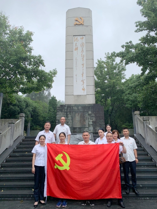 隨后,大家趕往位于浙東南樂清灣畔,中國工農(nóng)紅軍第十三軍二師的誕生地——塢根鎮(zhèn),這里被譽(yù)為中國東部的“延安”。全體黨員懷著無比崇敬的心情,在紅十三軍二師革命烈士紀(jì)念碑前肅立,悼念17位在塢根戰(zhàn)斗過的革命烈士。在紅二師史跡紀(jì)念館,大家了解到,塢根早在1928 年就建立了4個(gè)黨支部,1930年初成立塢根游擊大隊(duì),同年擴(kuò)編為紅二師,形成以塢根為根據(jù)地的溫嶺、玉環(huán)、樂清三邊武裝割據(jù)局面的鼎盛時(shí)期。紅二師從開始活動(dòng)直至余部斗爭停止,前后經(jīng)歷了五十余次戰(zhàn)斗,其中規(guī)模較大的反“圍剿”戰(zhàn)斗就有五次。在長達(dá)十年的艱苦斗爭中,他們用血肉之軀,譜寫了一曲曲英雄贊歌,再現(xiàn)了中國工農(nóng)紅軍第十三軍不怕困難、不畏強(qiáng)暴、前仆后繼、英勇奮斗的英雄場景,為弘揚(yáng)革命精神提供了生動(dòng)的歷史畫卷。