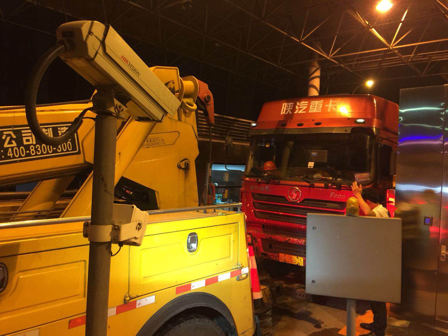 超載有風險 安全記心中 7月15晚21點40分左右,一輛皖S牌照的大貨車,在臺州收費所出口6號車道繳費后欲離開時發現車子熄火無法啟動,駕駛員數遍嘗試均不成功。此時當班班長郭斯泓細心地發現車子底下在漏油,駕駛員也確認開不了,于是馬上聯系監控中心需要拖車,并臨時關閉車道,引導排隊車輛至其他車道。