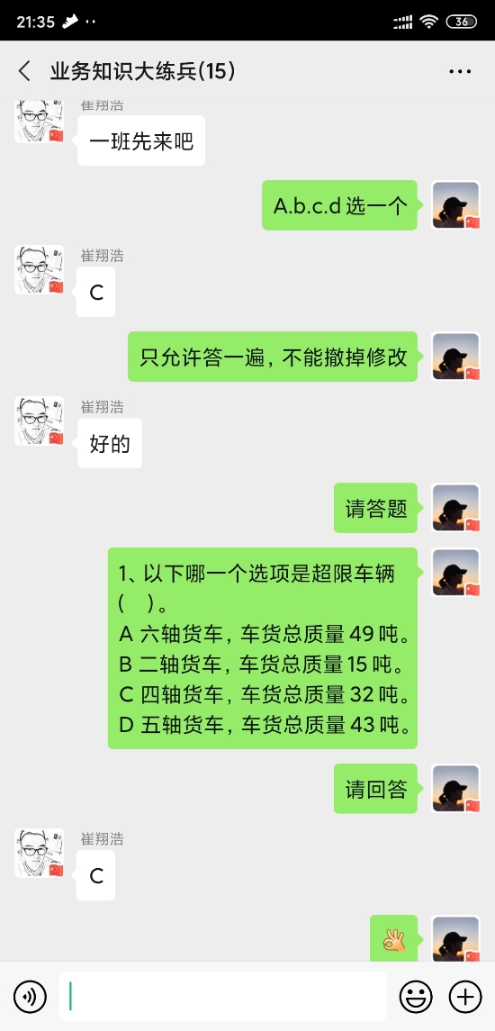 圖為比賽答題現場 復賽開始前,參加人員由所務人員組建了群,雖然是以網絡方式比賽,但比賽熱情高漲,你追我趕,分數不相上下,其中第一小組以突出表現最終奪冠。收費一班崔翔浩、何丹燕,收費三班任青青分別獲得個人第一、二、三名。 這種“比一比,練一練”的形式,營造了良好的學習氛圍,它有助于更全面地提升員工業務水平和綜合素質,更進一步激發全體員工深入學習新業務新知識的熱情。 楊雅芬
