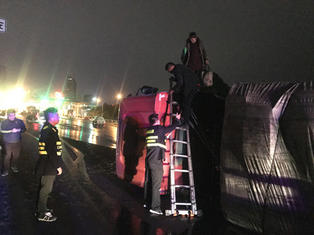 隨后,施救中心、交警、維養中心人員趕到,經過將近三個小時努力,終于將內廣場側翻車輛吊起,并用沙子處理掉在地上的機油以免發生二次事故,有效保障了收費區域的安全暢通。 臨近年關,在這里提醒廣大貨車司機朋友,請一定要將貨物捆扎牢固,以免造成損失,過一個安定祥和的春節。 周曄
