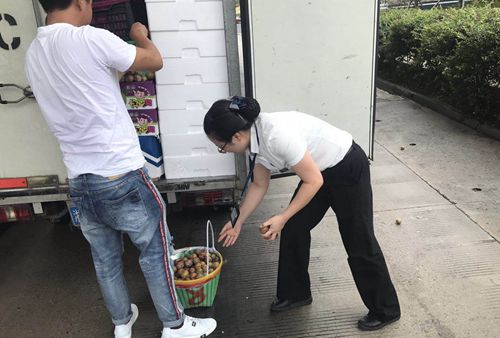 圖為工作人員幫司機撿李子 一個個李子雖小,卻很調(diào)皮。有的滾到了欄桿前,有的溜到了車道的狹縫里,有的甚至逃到了車底下,收費員鄭維見狀,立馬彎腰撿李子,又迅速跑到欄桿前,很靈活地抓起了好幾個李子。狹縫里都是沖洗車道留下來的臟水,鄭維又毫不猶豫地將手伸向臟水里撿李子,再拿到水龍頭前沖洗一番后放回到司機的籃子里。一來一回好幾趟,原本平日里就怕熱的鄭維早已滿身大汗,此時她卻全然不顧。