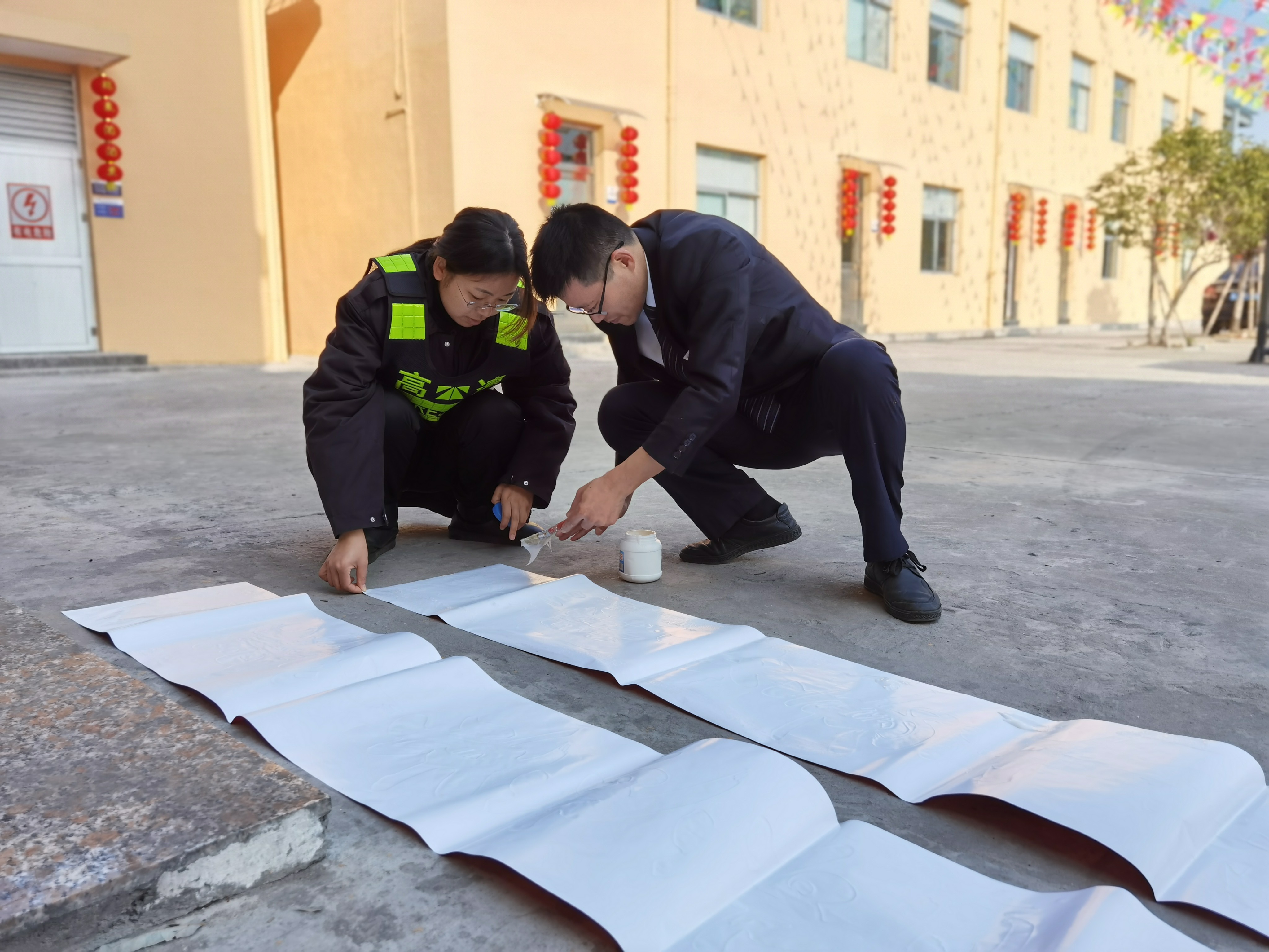 大家分工合作,搬梯子、遞春聯(lián)、貼膠帶、校正高低。在站所內(nèi)每個(gè)角落都掛上了紅彤彤的燈籠;收費(fèi)區(qū)域內(nèi)廣場兩邊的欄桿上扎著一面面彩旗。一幅幅精致喜慶的對(duì)聯(lián)、“福”字,一串串三角彩旗,一個(gè)個(gè)大紅燈籠把整個(gè)收費(fèi)站所點(diǎn)綴得處處洋溢著濃厚的節(jié)日氛圍,“年味”十足,讓在站員工和過往司乘朋友感受到新年的喜慶氛圍和“家”的溫暖。