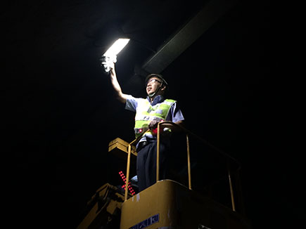圖為工作人員更換滅火器 因隧道內(nèi)車輛往來密集,氣體和灰塵難以散發(fā),容易沉積在隧道壁、監(jiān)控?cái)z像頭及照明燈上形成污漬,此日積月累削弱了隧道內(nèi)的照明效果,影響駕駛員視線,存在安全隱患。對(duì)此,黃土嶺隧道所組織人員對(duì)隧道進(jìn)行清洗和維修保養(yǎng)設(shè)備,全面排查各類安全隱患。執(zhí)勤隊(duì)利用登高車逐一清潔寧向左洞內(nèi)監(jiān)控?cái)z像頭及照明燈,檢查消防設(shè)施狀況,統(tǒng)一對(duì)滅火器進(jìn)行掛牌完善記錄,并協(xié)同維養(yǎng)中心檢修溫向隧道照明系統(tǒng)線路,修復(fù)損壞的燈具。 經(jīng)過清洗保養(yǎng)后的黃土嶺隧道,燈光通明,監(jiān)控清晰,有效地保障了隧道的安全暢通。 毛譯聆