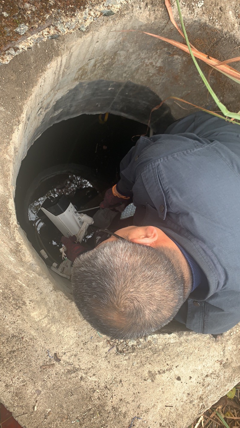 大溪嶺南高位水池地點在溫州地界,山體較高,攀行需要近一個小時,金所得知情況后,立即帶著執(zhí)勤隊上山到高位水池檢查,他們背著工具箱,戴著手套、拿著柴刀,經(jīng)過一個小時的披荊斬棘來到南高位水池的井口,金所爬到井里進行檢查,發(fā)現(xiàn)光纜和電線都被老鼠咬斷了,才導致圖像不能工作,當場把電線接了回去,并回所準備其他材料,明日再次登山修理。