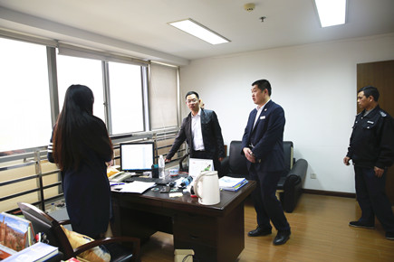 4月26日下午,公司副總經理董阿林帶領辦公室、安保部、物業公司檢查公司大樓辦公區域、宿舍及公共區域的衛生、安全工作。