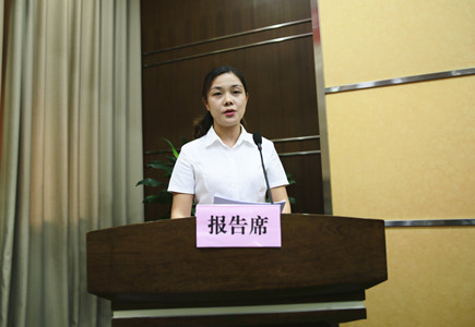 圖為公司財務總監(jiān)章彩霞宣讀議案