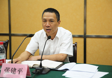 圖為公司副董事長、總經(jīng)理張建平主持會議并作匯報