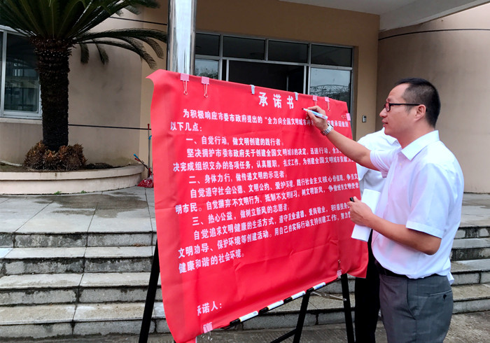 圖為動員會現(xiàn)場 章海峰要求大家充分認識創(chuàng)建全國文明城市的重要性,立足崗位,樹窗口形象,展行業(yè)新風,用自己的實際行動支持創(chuàng)建工作。此次創(chuàng)建工作,時間緊、任務重,需要全體人員迅速行動起來,從我做起,從細節(jié)做起,從點滴做起,逐層壓實責任,確保萬無一失。文明城市創(chuàng)建工作不僅僅是政府的事,更是全體市民的事,也直接體現(xiàn)了一個城市的幸福指數(shù),大家要以“一流的城市環(huán)境、一流的公共秩序,一流的服務水平、一流的精神面貌”迎接測評。