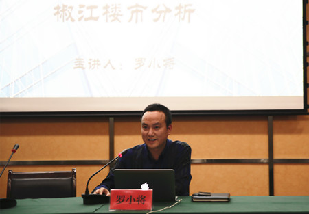 圖為集團黨委委員、副總經(jīng)理羅小將分析椒江2017年樓市情況