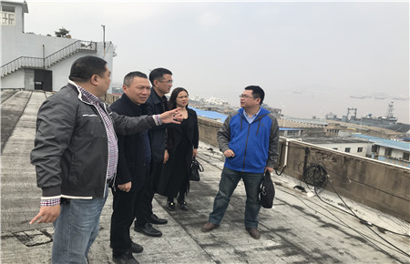 圖為張建平一行人在新碼頭建址考察 會后,在海門港埠總公司總經理王宏濤的陪同下,張建平一行人分別實地考察了新、舊碼頭現場。 顧維安