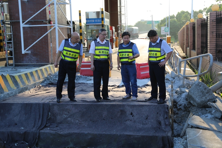 圖為陳文波檢查臺州收費站內廣場隔離墻