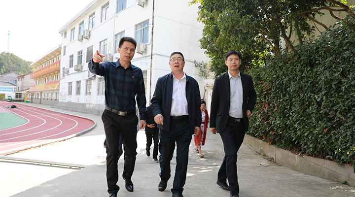 圖為陳文波等人實(shí)地參觀了解學(xué)校場地