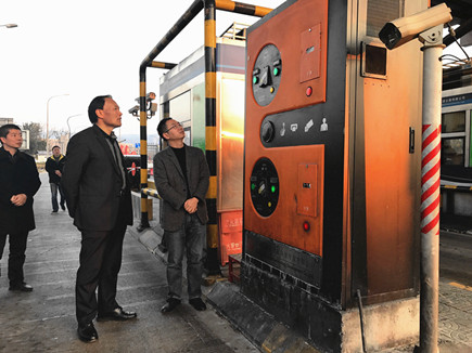 圖為公司副總經(jīng)理董阿林正在實地考察自動發(fā)卡機運行情況