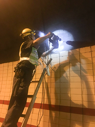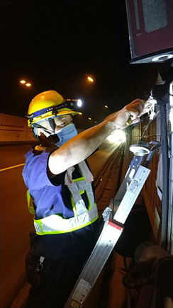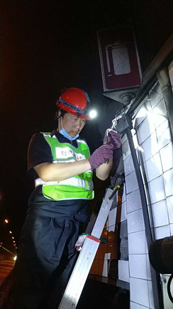 圖為工作人員安裝消防燈燈泡 大溪嶺—湖霧嶺隧道全長(zhǎng)4116米,為保障隧道內(nèi)行車安全、暢通、舒適,定期組織安排清洗隧道兩壁墻體、邊溝,檢修內(nèi)部各項(xiàng)機(jī)電設(shè)施成了維養(yǎng)中心每季必不可少的工作之一。而每次清洗檢修必將涉及封道,為最大程度減少因封道對(duì)社會(huì)造成的負(fù)面影響,中心工作人員早在一周前就對(duì)隧道內(nèi)各項(xiàng)損壞機(jī)電設(shè)備進(jìn)行摸底統(tǒng)計(jì),以便合理制定維修方案和安排施工人員。 12號(hào)早上7點(diǎn),隨著封道工作就緒,兩組清洗隊(duì)伍分別從隧道中部開始向兩頭清洗,六組專業(yè)燈具維修人員站在貨車腳手架上由北往南逐個(gè)推進(jìn),發(fā)現(xiàn)一盞修復(fù)一盞,或更換燈管、或更換觸發(fā)器、或更換鎮(zhèn)流器,對(duì)于一些同時(shí)有多個(gè)配件壞死或腐蝕嚴(yán)重的燈具就直接采取整體更換措施,大大提高了工作效率。而中心工作人員除了現(xiàn)場(chǎng)全程協(xié)調(diào)管理以外,還負(fù)責(zé)修復(fù)隧道兩壁逃生標(biāo)志及報(bào)警電話等多個(gè)指示牌。按照之前制定的計(jì)劃,六人兵分兩組由隧道兩頭分別向中間修復(fù),這樣既能與其他工作同時(shí)進(jìn)行又不造成相互干擾。另外一人則配合隧道所一起在登高車協(xié)助下,對(duì)洞內(nèi)各類攝像頭進(jìn)行逐個(gè)清理,全場(chǎng)人員各司其職,各盡其責(zé),現(xiàn)場(chǎng)一派忙碌的景象。 4公里多長(zhǎng)的隧道,由于流動(dòng)性差,洞內(nèi)空氣質(zhì)量比霧霾嚴(yán)重?cái)?shù)倍,僅一只口罩根本凈化不了廢氣,但由于時(shí)間緊,任務(wù)重,中心隊(duì)員和施工人員顧不上惡劣的環(huán)境,努力和時(shí)間賽跑,兩日下來共修復(fù)(清理)損壞燈具100余套,各類標(biāo)志指示牌40余塊,攝像頭30余個(gè),恢復(fù)了隧道內(nèi)各項(xiàng)機(jī)電設(shè)施的正常運(yùn)行,排除一切安全隱患,有效保證了隧道安全暢通。 項(xiàng)寅曉