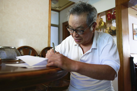 圖為老干部陳幸均在病床上簽訂股權轉讓手續