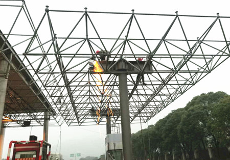 “起吊”,隨著現(xiàn)場施工管理人員的一聲令下,兩臺(tái)吊機(jī)吊著鋼結(jié)構(gòu)網(wǎng)架緩緩升起。“往左一點(diǎn),慢一點(diǎn)”經(jīng)過近十分鐘的努力,在施工現(xiàn)場管理人員的準(zhǔn)確指揮下,吊機(jī)駕駛員輕輕地把鋼結(jié)構(gòu)網(wǎng)架準(zhǔn)確無誤地放在預(yù)定支架上,溫嶺西收費(fèi)車道鋼結(jié)構(gòu)網(wǎng)架成功完成吊裝。接下來施工人員陸續(xù)在網(wǎng)架上鋪設(shè)面板,安裝標(biāo)志牌、照明、監(jiān)控等設(shè)備,并對崗?fù)C(jī)電進(jìn)行調(diào)試。