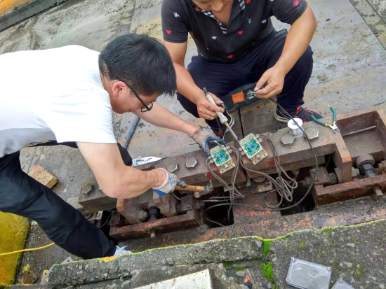 圖為中心隊員鄭軍發(fā)配合稱臺調(diào)試