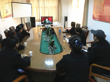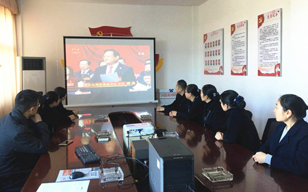 圖為集團(tuán)全體干部職工收看現(xiàn)場