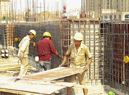 上圖為工人冒著高溫在文鼎苑工地上忙碌作業