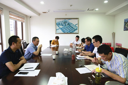 圖為集團(tuán)副董事長、總經(jīng)理張建平認(rèn)真聽取相關(guān)人員下階段工作安排匯報(bào)