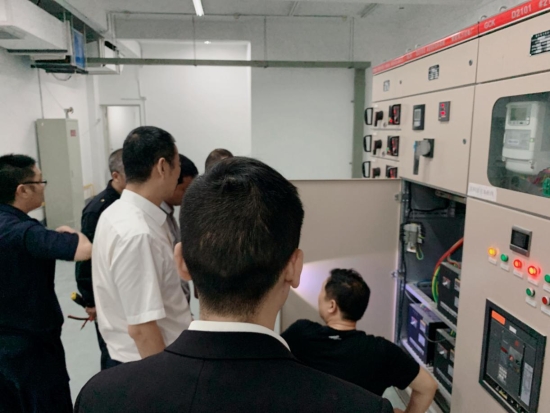 圖為多方合力查找問題現場 5月23日,電力公司上門檢修,告知配電房及電路問題一切正常。面對空調正常、電路正常的報告,展廳內又嘗試開啟空調,但10分鐘左右高壓又跳閘。即將進入炎熱的夏季,房產銷售展廳內不能缺少空調。 房產公司求援于工程部機電設備維養(yǎng)中心,5月28日,葉俊等四名專業(yè)電力人員,以及大溪嶺隧道所金衛(wèi)軍赴銷售廳對電力問題進行現場勘察,經仔細梳理、剖析,得出結論后反饋給電力部門,電力部門采納建議后第二次派人前來整改,歷史遺留電力問題終于徹底排除。 鄭攀