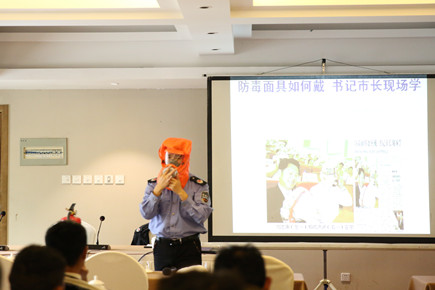 圖為教員現(xiàn)場示范防煙面具的使用方法 此次培訓(xùn)特邀了臺州安居防火技術(shù)有限公司的教員開展消防安全知識講座。培訓(xùn)中,教員通過播放真實的火災(zāi)視頻,結(jié)合近期全國及本市發(fā)生的多起火災(zāi)事故案例,深入淺出地講解了火災(zāi)發(fā)生的原因和危害、安全逃生方式、常用消防工具的使用方法以及防火注意事項等內(nèi)容。隨后,教員就如何正確地使用滅火器、防煙面具等消防用具進行了現(xiàn)場操作示范,并耐心解答了大家在日常生活工作中遇到的消防安全疑問。 培訓(xùn)結(jié)束后,參訓(xùn)人員紛紛表示消防知識培訓(xùn)是堂必修課,不僅進一步認識到火災(zāi)不留情、火災(zāi)可防范的道理,還加深了對消防安全知識的了解掌握。今后,市政公司將常態(tài)化開展此類活動,切實提高全員消防安全自防自救能力,做到居安思危,思則有備,有備無患。 張琛